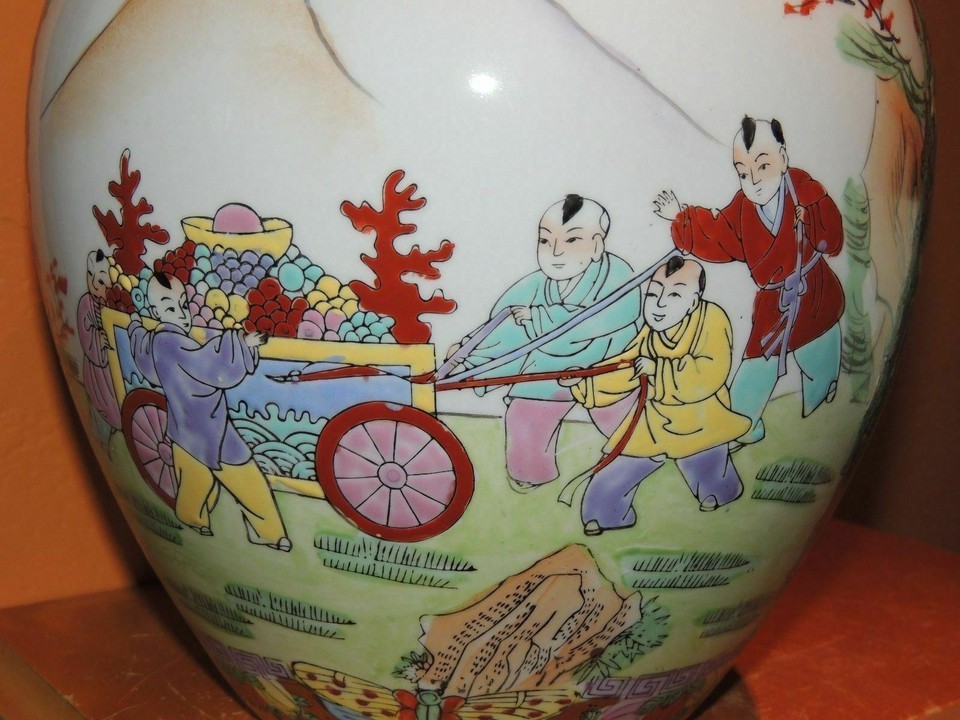 - Chinese 9" Jar no lid Famille Rose boys with cart Vintage Antique 20th