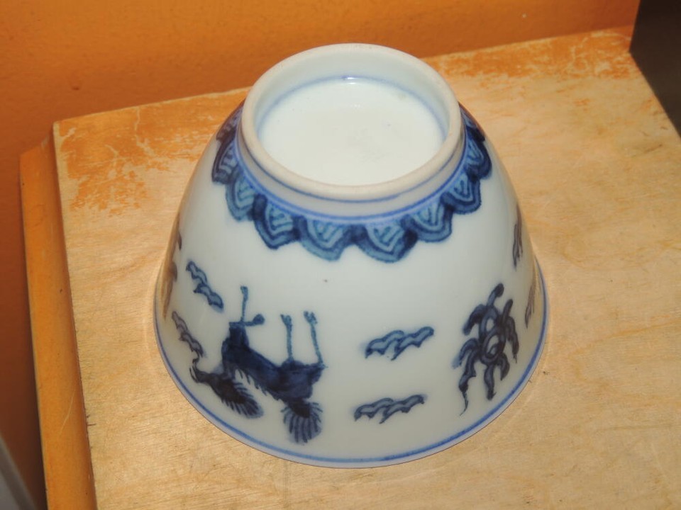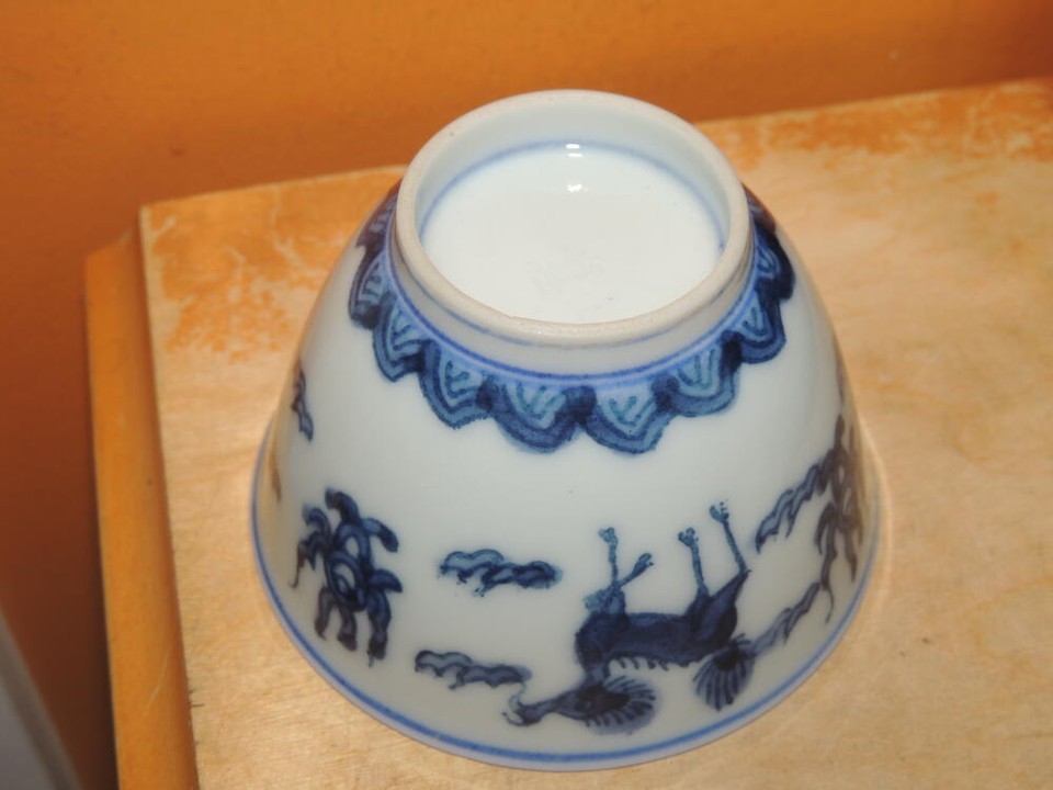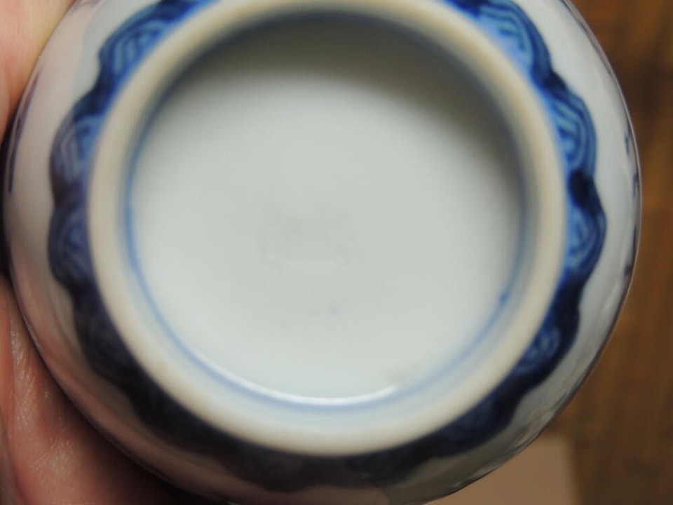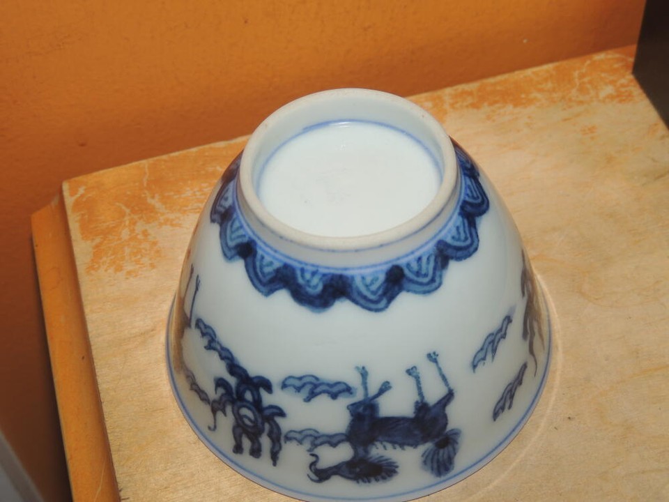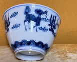 - Chinese Cup 3.25 blue white Qilin engraved mark poss Ming/ Qing Antique/ Vintage