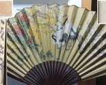 - Chinese Fan 30"x52" Painted Cranes Signed fabric paper bamboo Vintage Antique