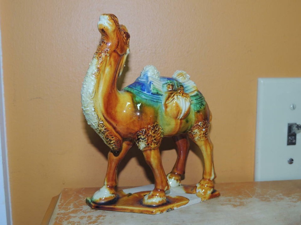 - Chinese Mud Camel 6.25"x5.25" yellow Mudman Mud Man Tang style Sancai marked