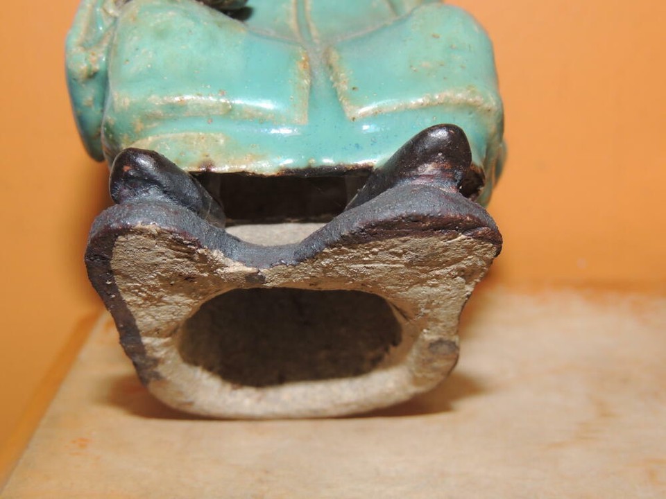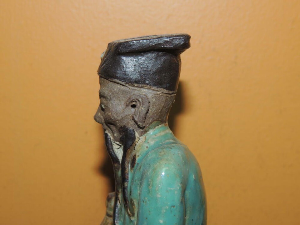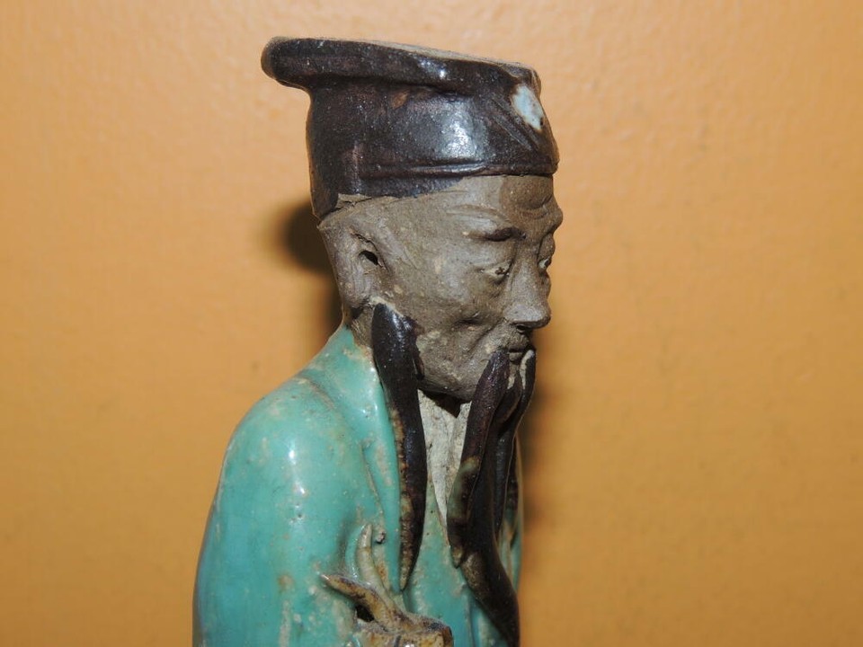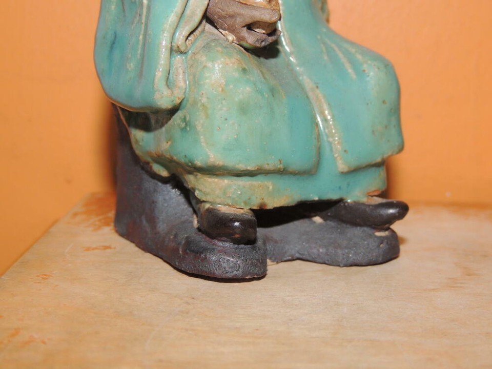 - Chinese Mud Man Men Green Blue Robe dish 6" drip glaze mark China Mudman Antique