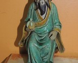 - Chinese Mud Man/Men Seated Green Yellow Robe melon/ fruit 6" marked China Mudman