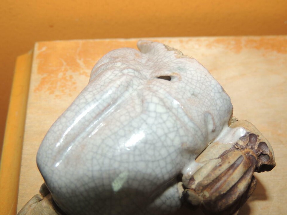 - Chinese Mud Man / Men White Robe fruit 3.25" Ge / Guan type glaze Mudman Antique