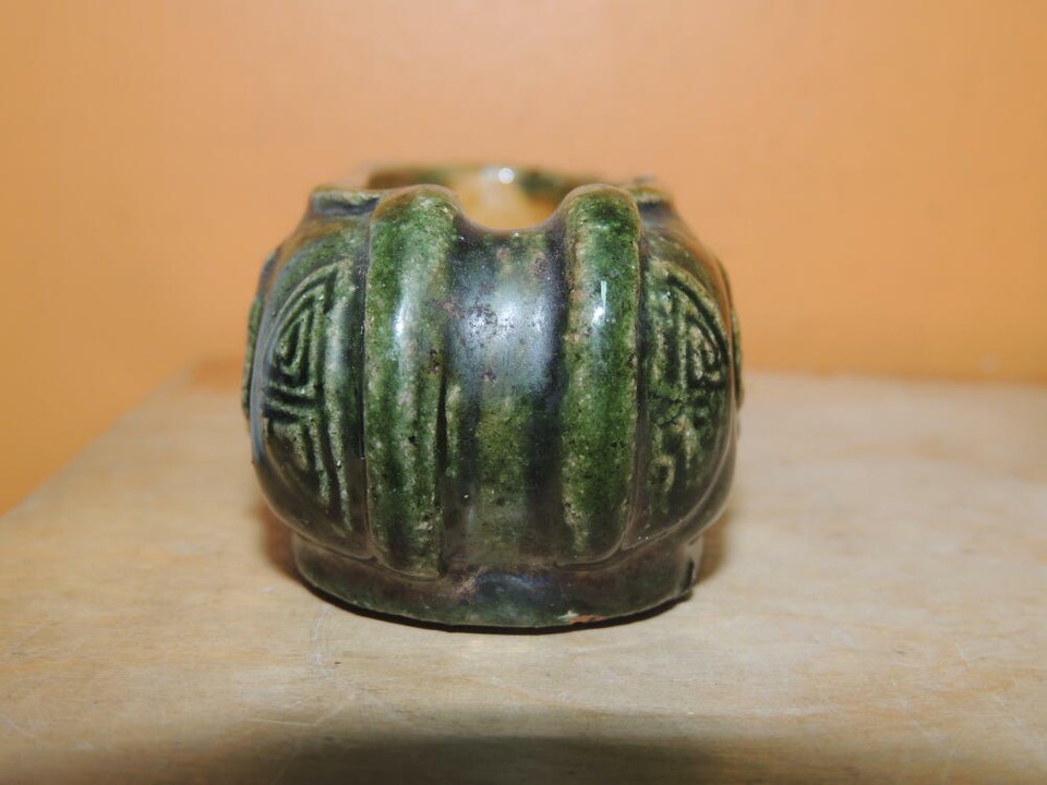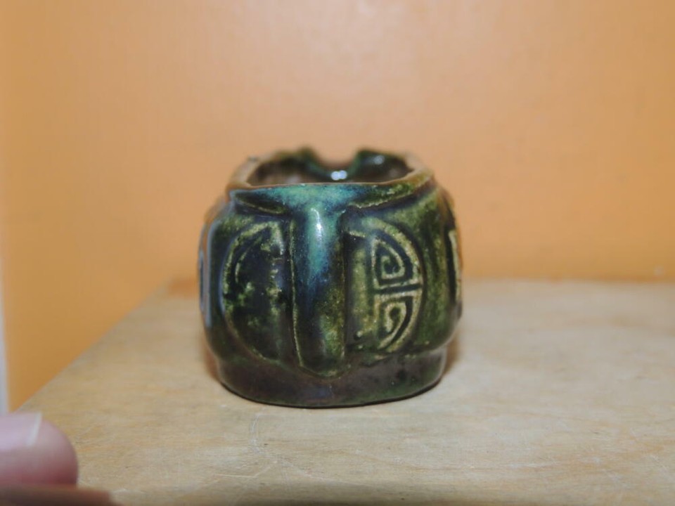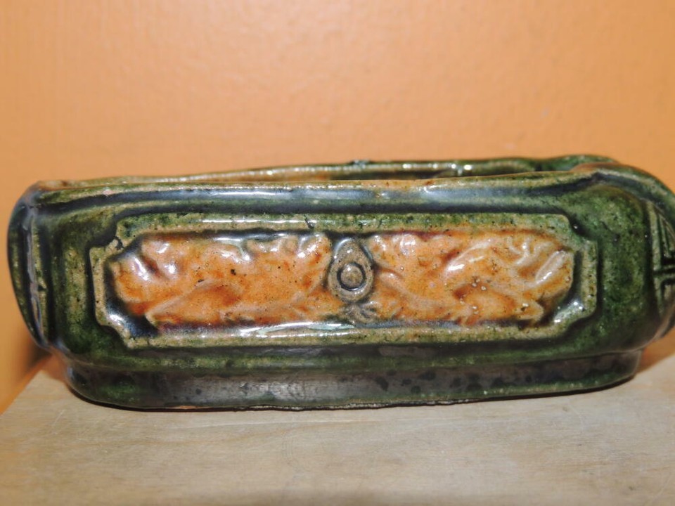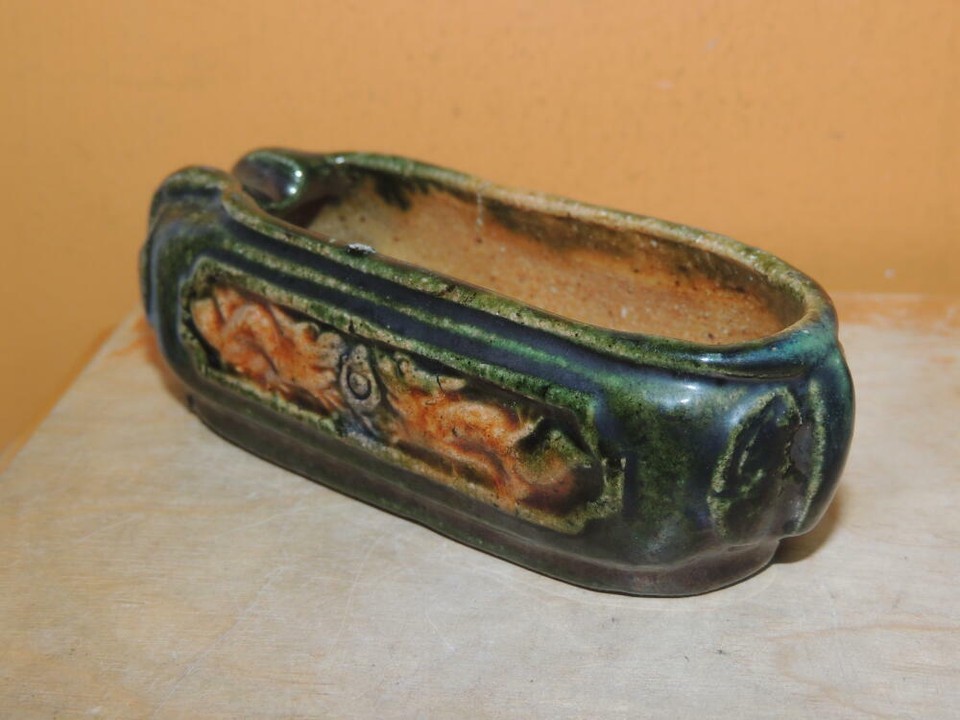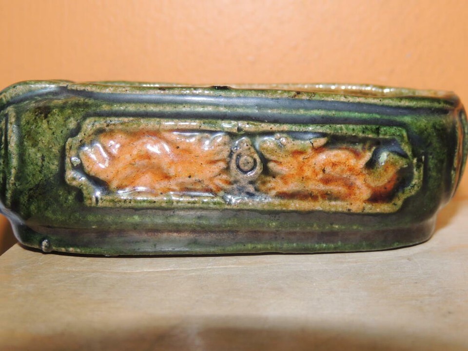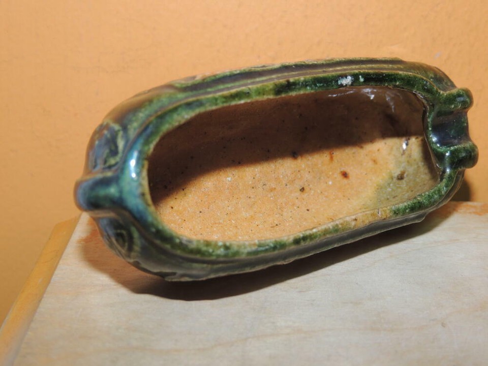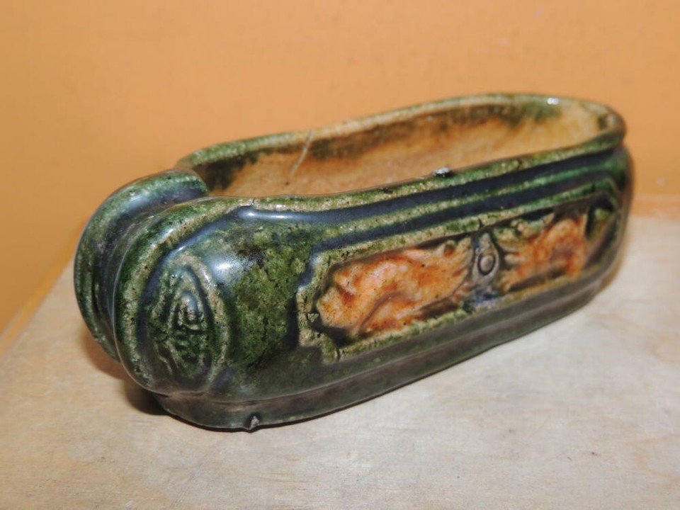 - Chinese Mud Shoe 4" Green overglaze dragon pearl Mudman Vintage / Antique c 1935