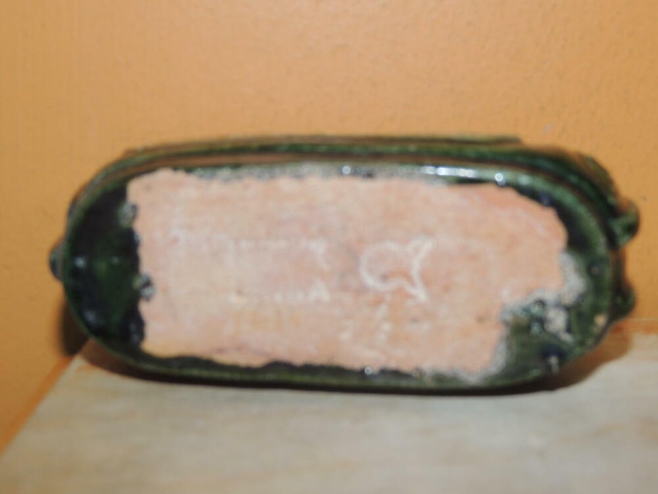 Chinese Mud Shoe 4" Green overglaze dragon pearl Mudman Vintage / Antique c 1935