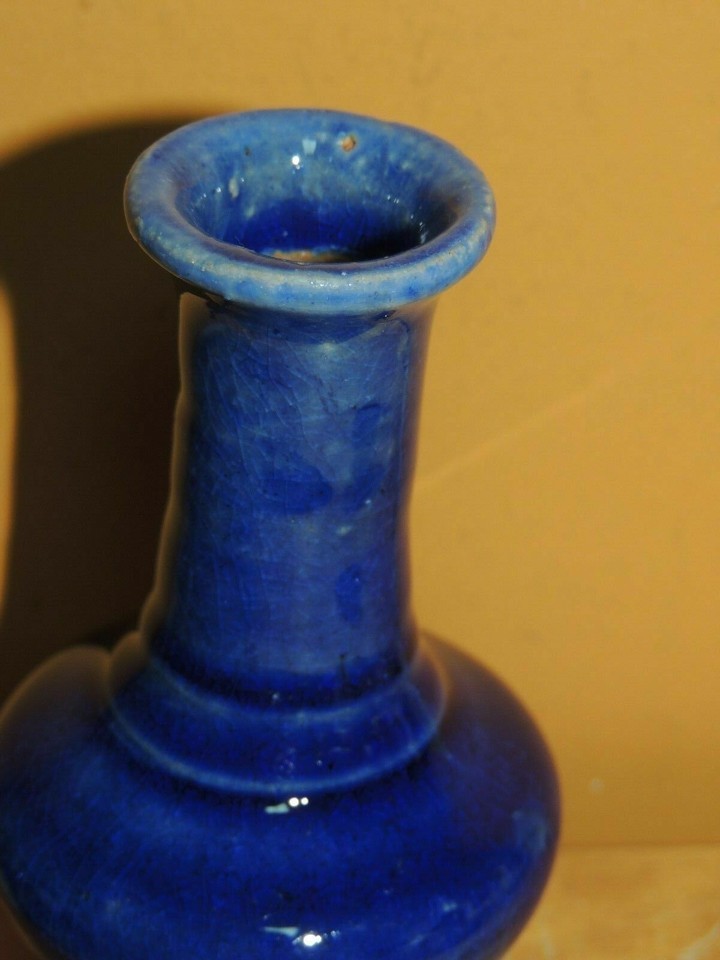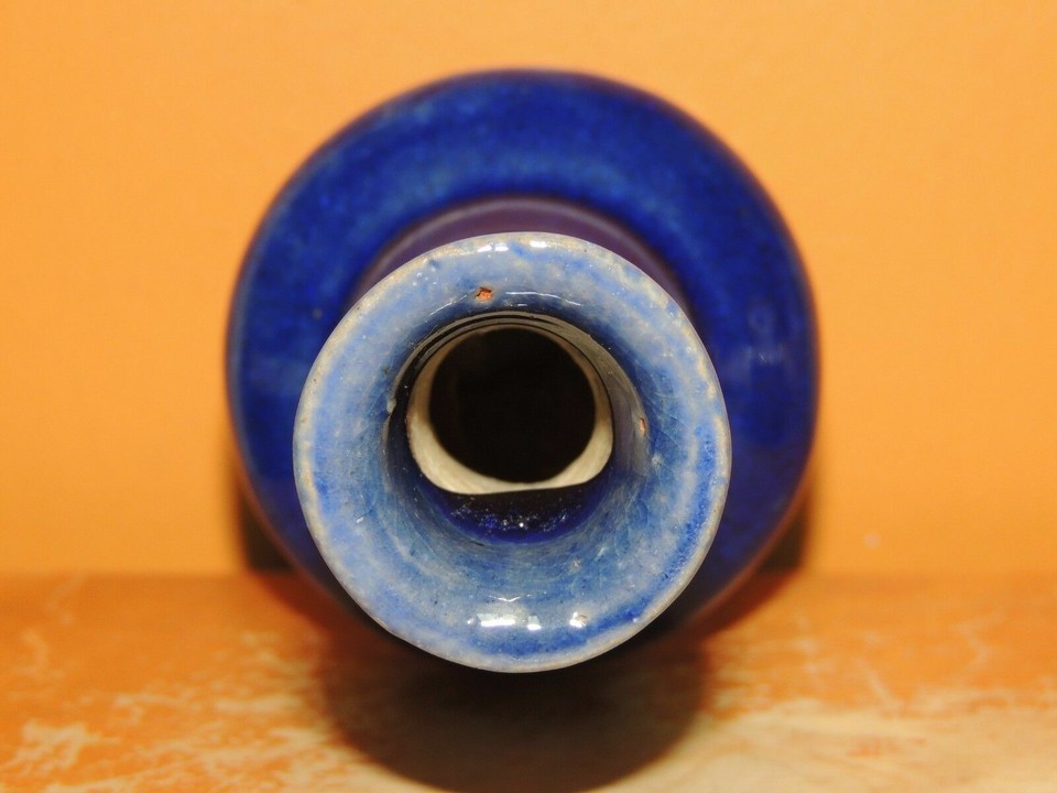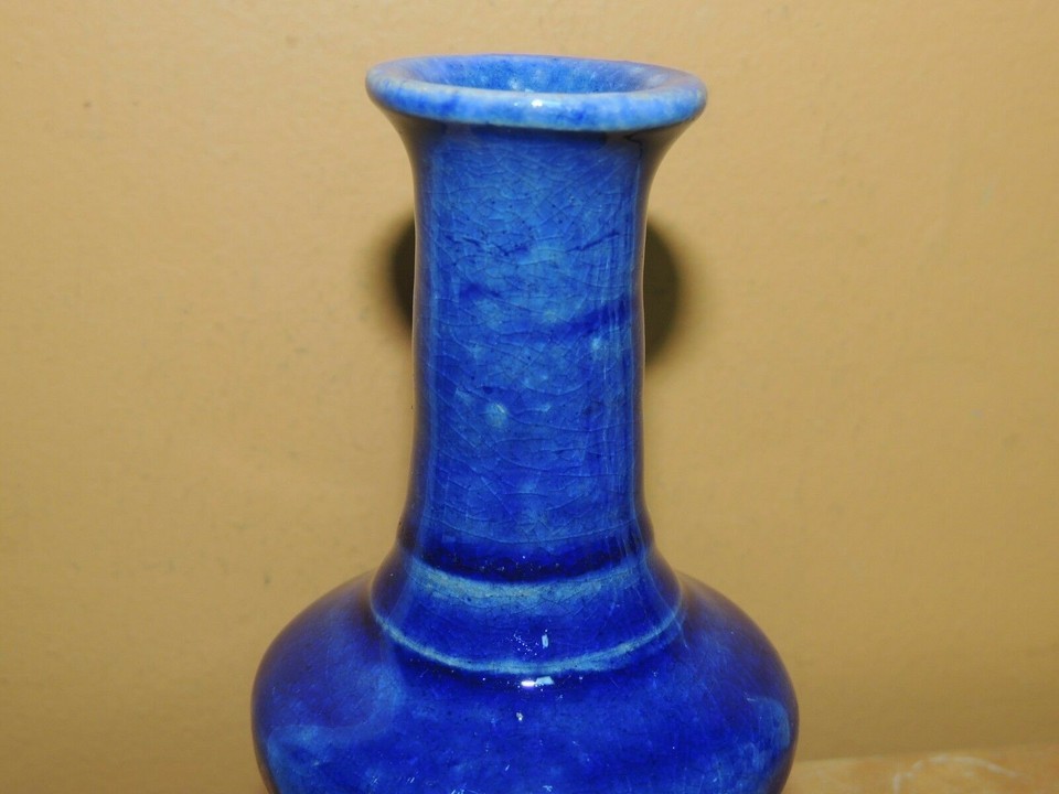 - Chinese Mud Vase pedestal Blue 4.5" drip glaze unmarked Mudman Antique Vintage