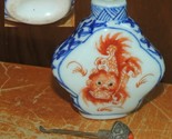 - Chinese Porcelain 2.5" Snuff Bottle Foo Lion iron red overglaze blue underglaze