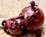Chinese good luck gourds with Foo Dog. Unusual ornate figurine of carved red resin.