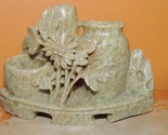 - Chinese stone 4.25" Carved flower with vase pot green-beige hard stone