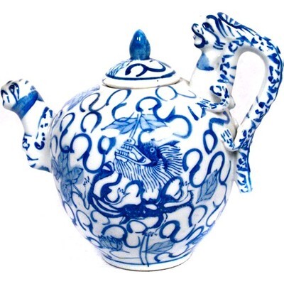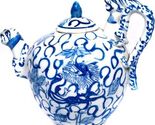 - Chinesisch Blau & Weiß Porzellan Teekanne Mehrere Drachen Blumen Signiert W/
