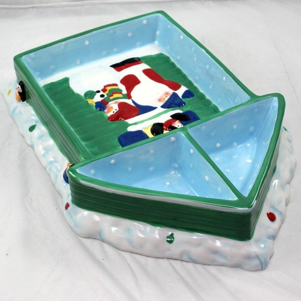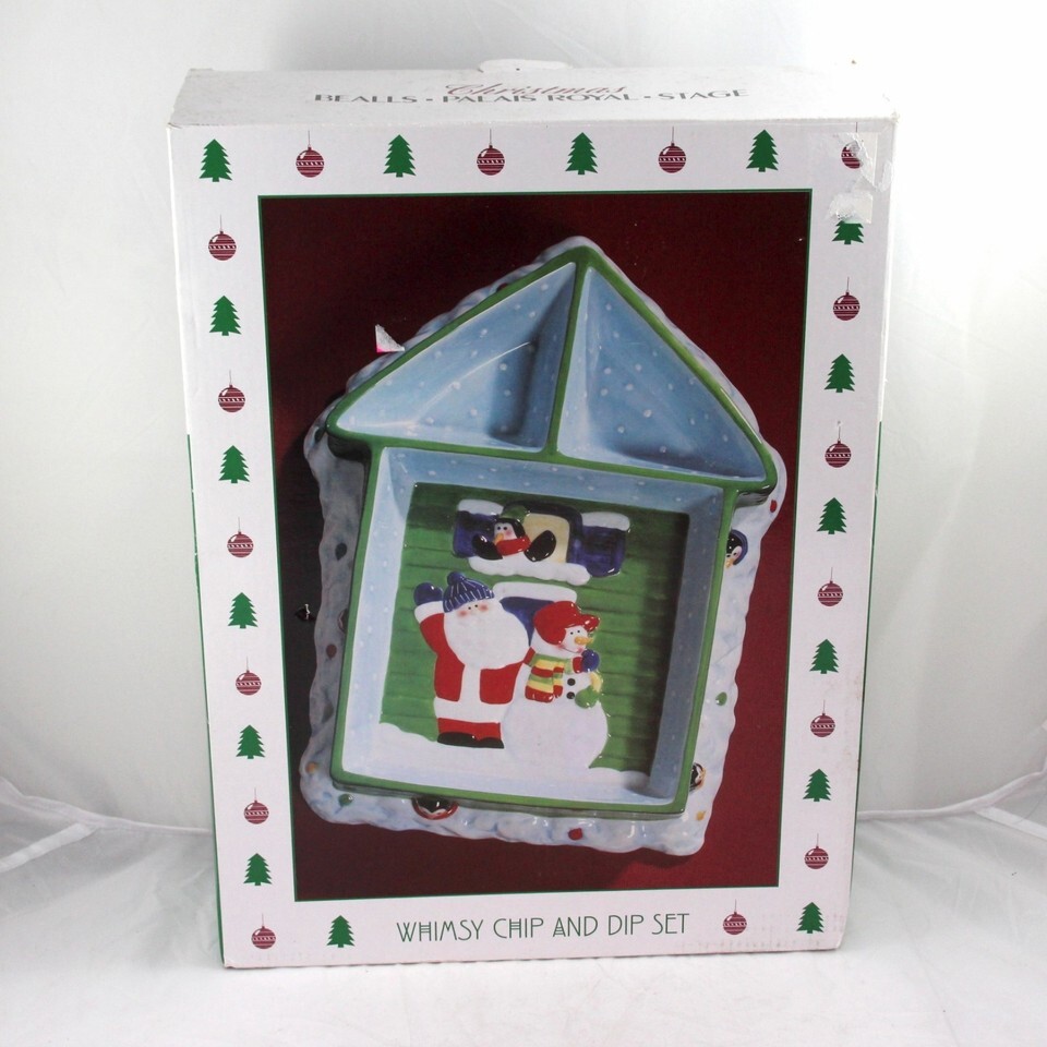 - Chip Dip Set Elements Penguin Snowman Santa Christmas Ceramic Xmas