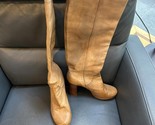 Stylish knee-high boots by Chloe in a tan leather finish.