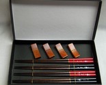 Lovely Enameled Wooden Chopsticks and Rests Set For 4 New In Gift Box
