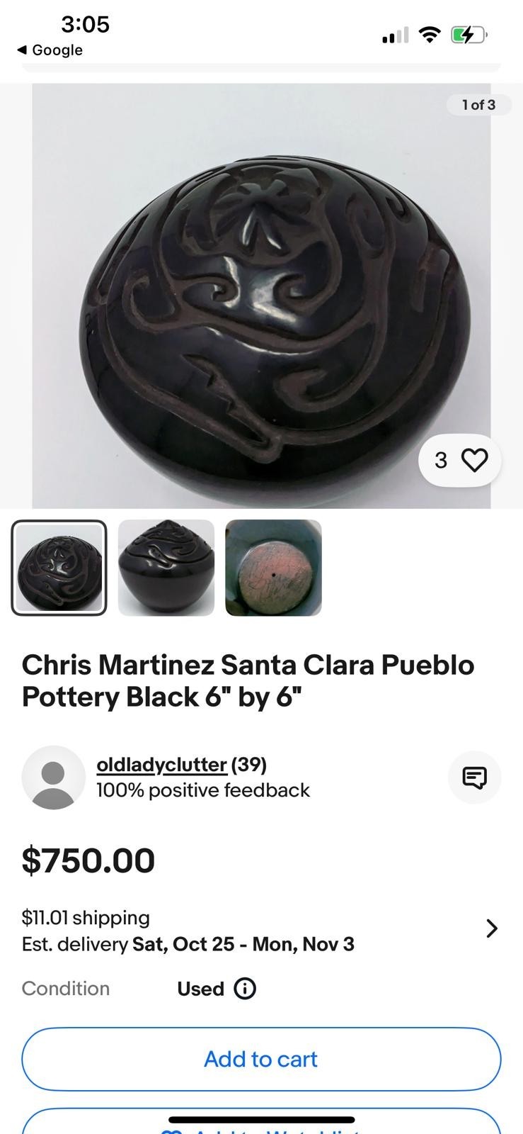 - Chris Martinez Santa Clara Pueblo Pottery Black Vase
