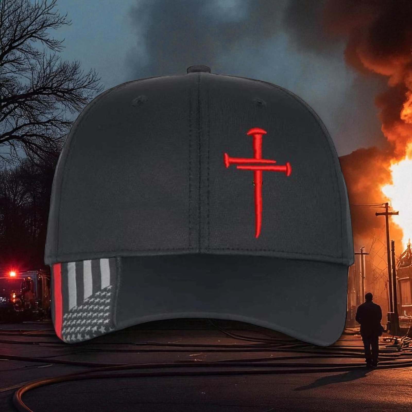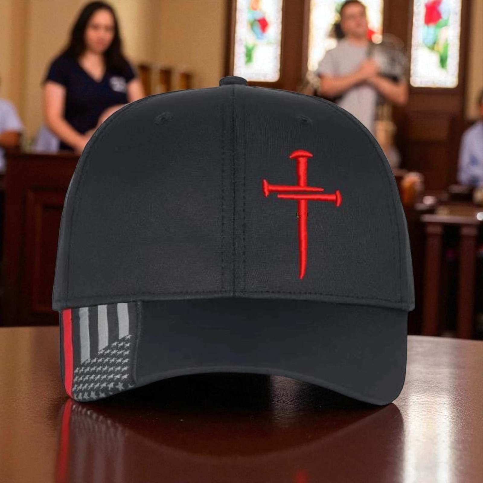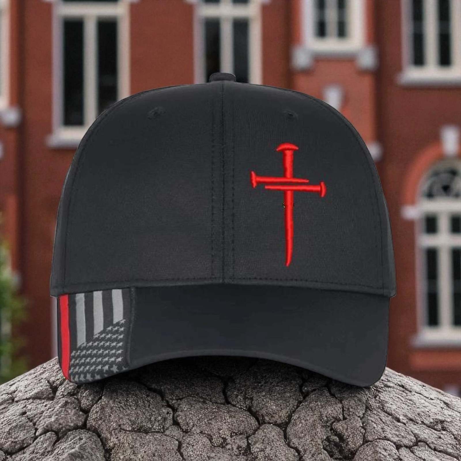 - Christian Hats for Men Women Jesus 3 Nail Cross CUSTOM Red Line Hat w/ Red Cross