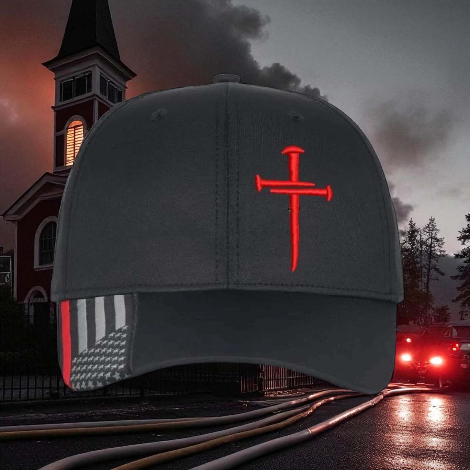 Christian Hats for Men Women Jesus 3 Nail Cross CUSTOM Red Line Hat w/ Red Cross