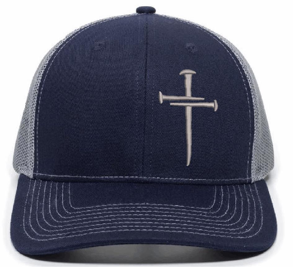 Christian Hats for Men Women OC771 Navy Gray Embroidered Hat with FREE DECAL