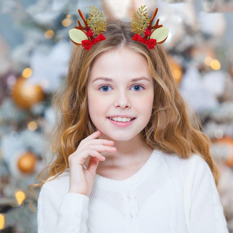 Christmas Bow Hair Clips Red Gold Reindeer Antler 2PCS Holiday Accessories