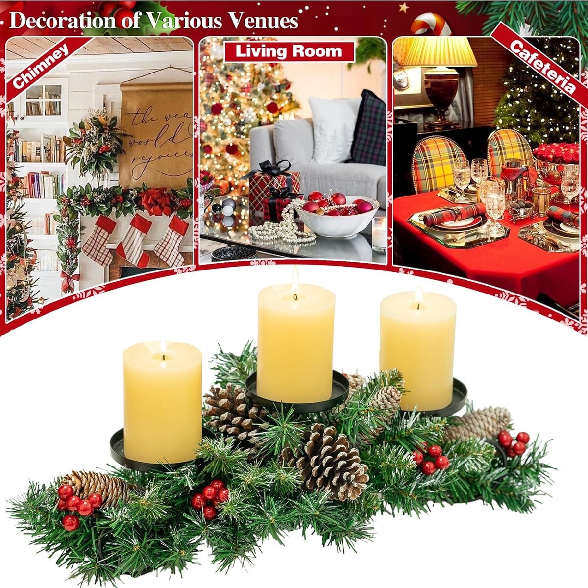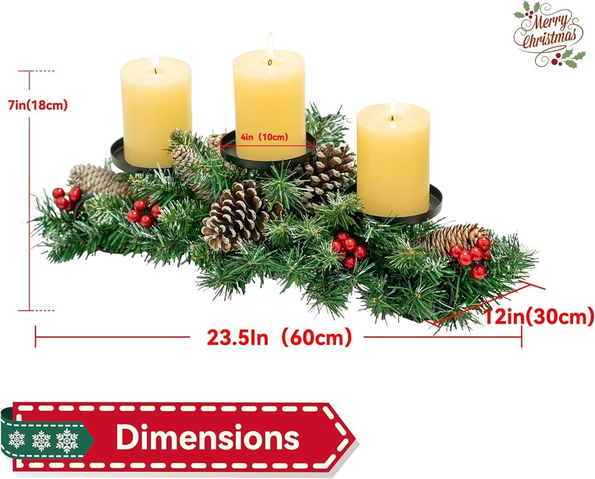Christmas Candle Holders Set, Candle Holder Table Centerpiece Includes 3 Candle Holders, Red Berries, Pine Cones,Christmas Home Decorations Candle Stand for Fireplace or Table Centerpiece