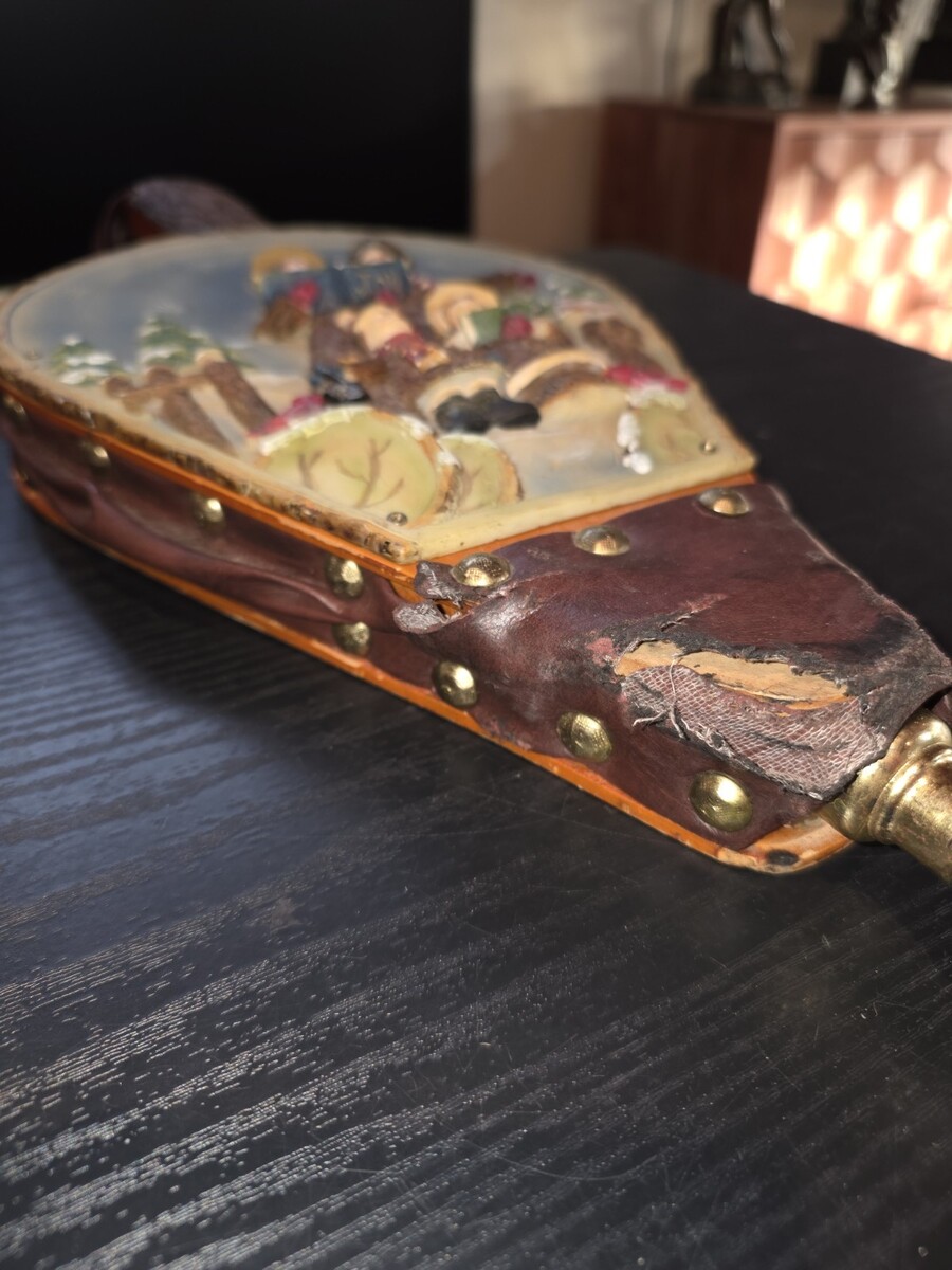 - Christmas Carolers Working Bellow 18” 3D Resin Wood Faux Leather Fire Stoker