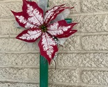 - Christmas Cemetery Cross:Candy Cane Poinsettia grave flowers, Red Grave Decor