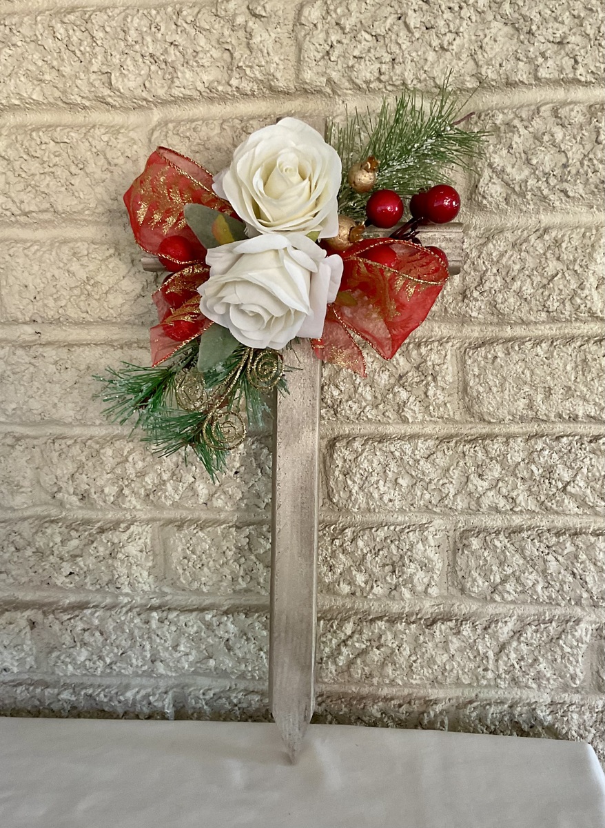 - Christmas Cemetery Cross: Roses grave flowers, Winter Grave Decoration