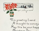 Christmas Day Greeting Card 1910s Embossed Poinsettia Farmhouse PCBG6B