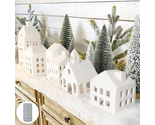 Charming Miniature Christmas Village - Transform your home into a winter wonderland with our lighted white Christmas village houses and mini Xmas trees, creating a magical scene reminiscent of a snowy Christmas Eve.