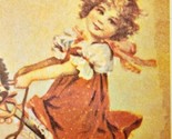 Christmas Greetings Postcard Victorian Girl Hong Kong Print Vintage PCBG7D
