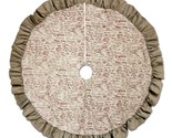 Christmas Greetings on Beige Tree Skirt 54 inch with Faux Burlap Trim
