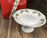 - Christmas Holly Holiday Fine Porcelain Pedestal Bowl 7.5" Japan