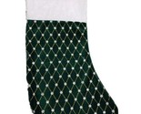 Christmas House Elegant Diamond Pattern Stocking 17" Green with Cream Fur Cuff