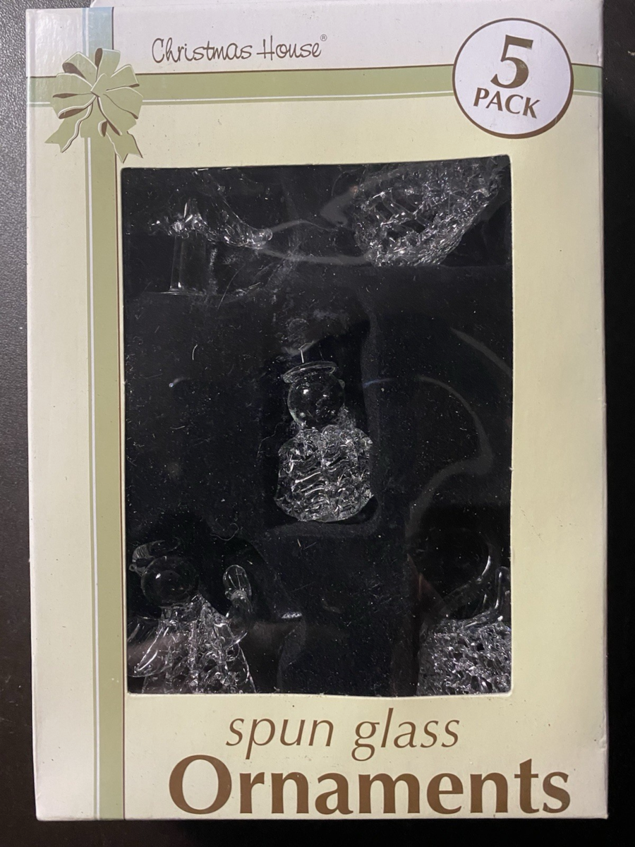 - Christmas House Spun Glass set of 5 Different Ornaments New! Great Gift!