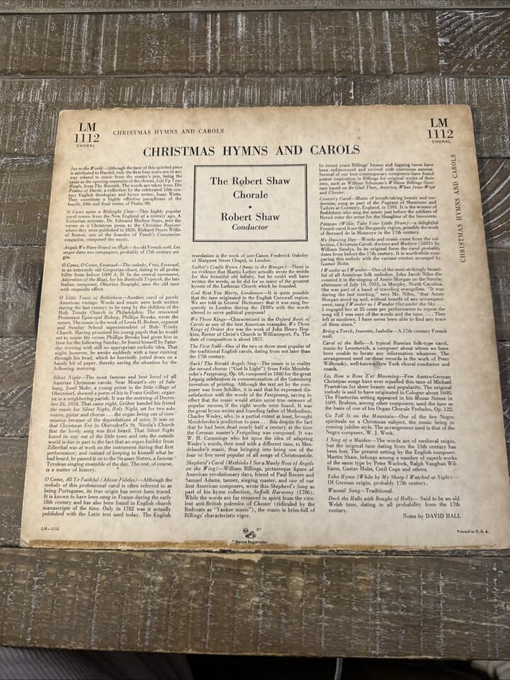 The Christmas Hymns and Carols Album is a vinyl record featuring various artists singing popular Christmas songs. This album provides a nostalgic listening experience for fans of traditional holiday music, with a mix of hymns and carols to enjoy during the festive season. The record format allows for a high-quality audio experience, making it a perfect addition to any music collection for those who appreciate the classic sounds of Christmas music.