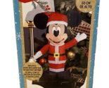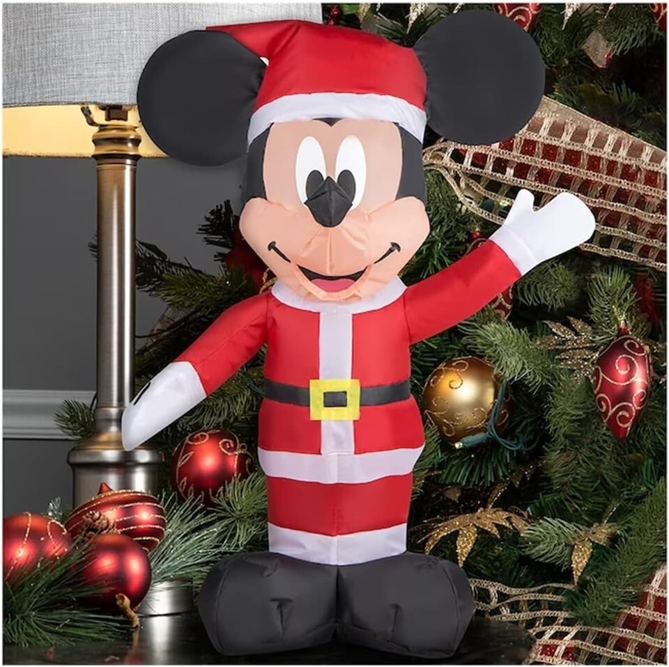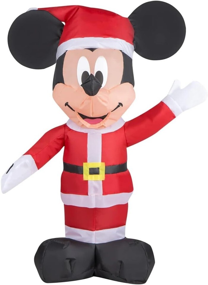 - Self-inflating Mickey Mouse Santa design with internal fan for quick setup