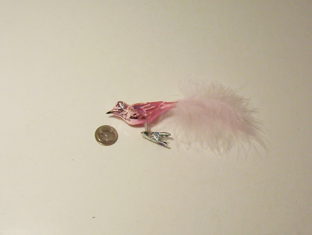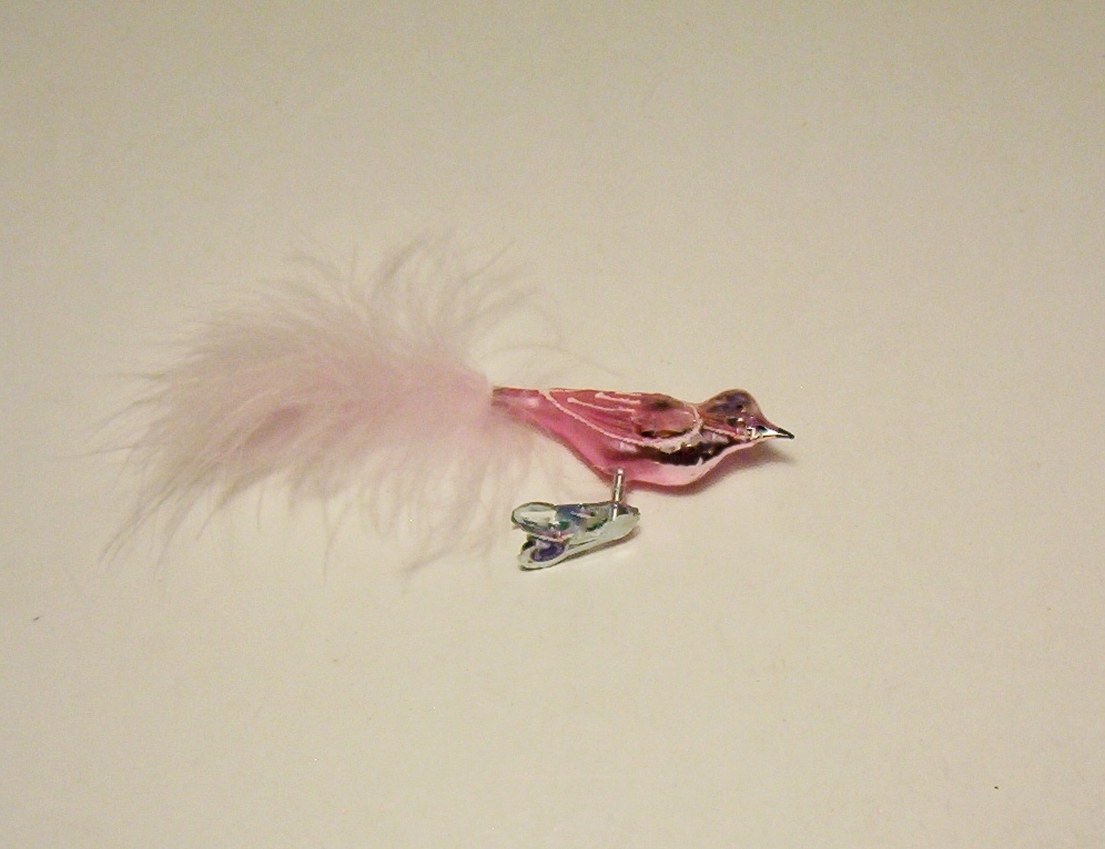 - Christmas Ornament Bird Figure Pink Iridescent Feathers