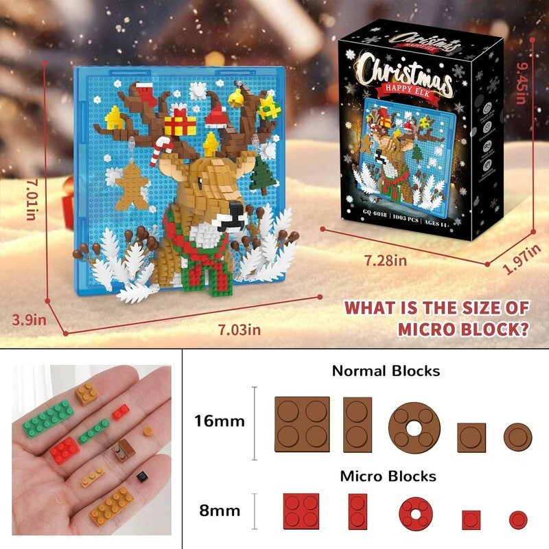 ?Durable Material?This christmas reindeer building set consists of 1005 micro blocks that are brightly colored, safe and durable, smooth and odorless. Including detailed instructions, once completed, you will enjoy the pleasure and sense of achievement of creating your own masterpiece of art.