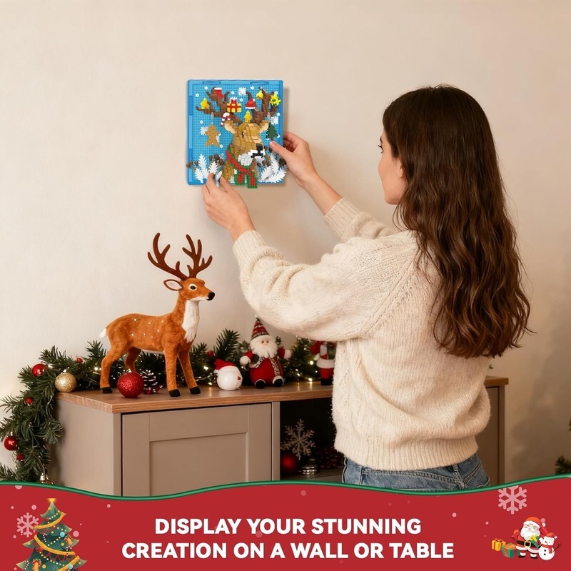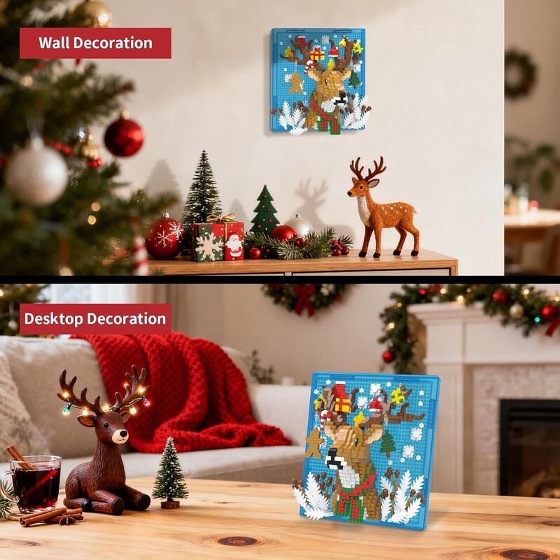 ?Unique Decor?This christmas reindeer building set has two display methods. It can be hung on the wall or placed on the table. It is a creative and outstanding artistic decoration for the living room, bedroom, study, office or any other space, adding a visual impact of art to any space.