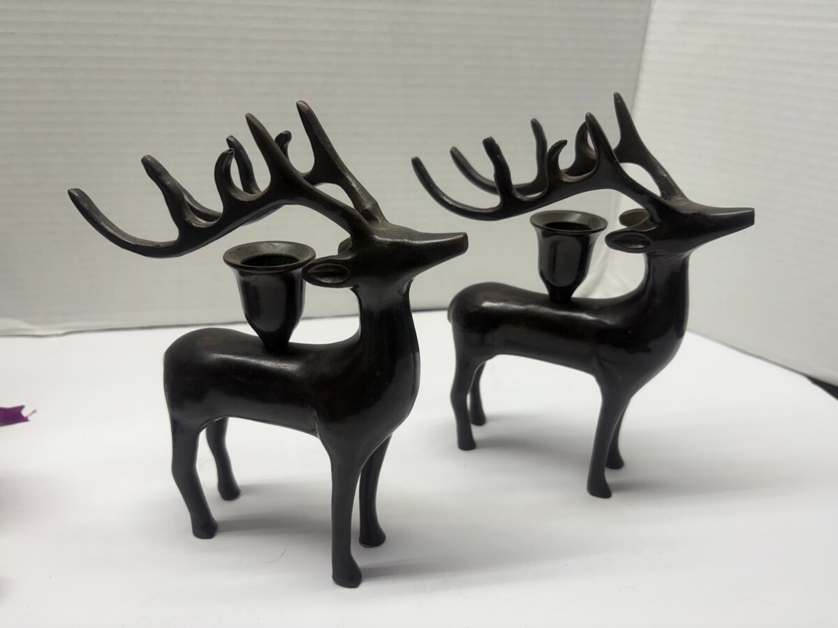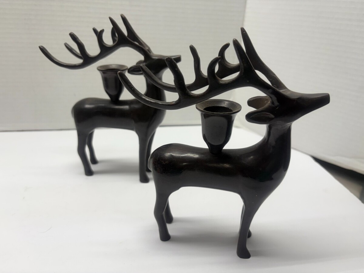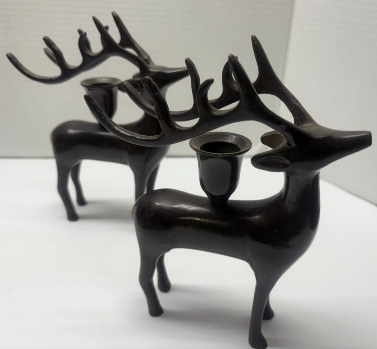 Christmas Reindeer Taper Bronze Enamelled Set of 2 Candle Holders
