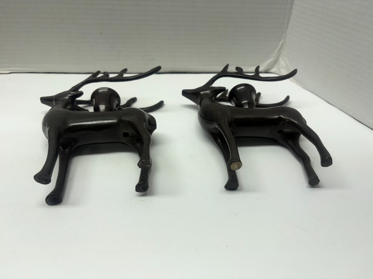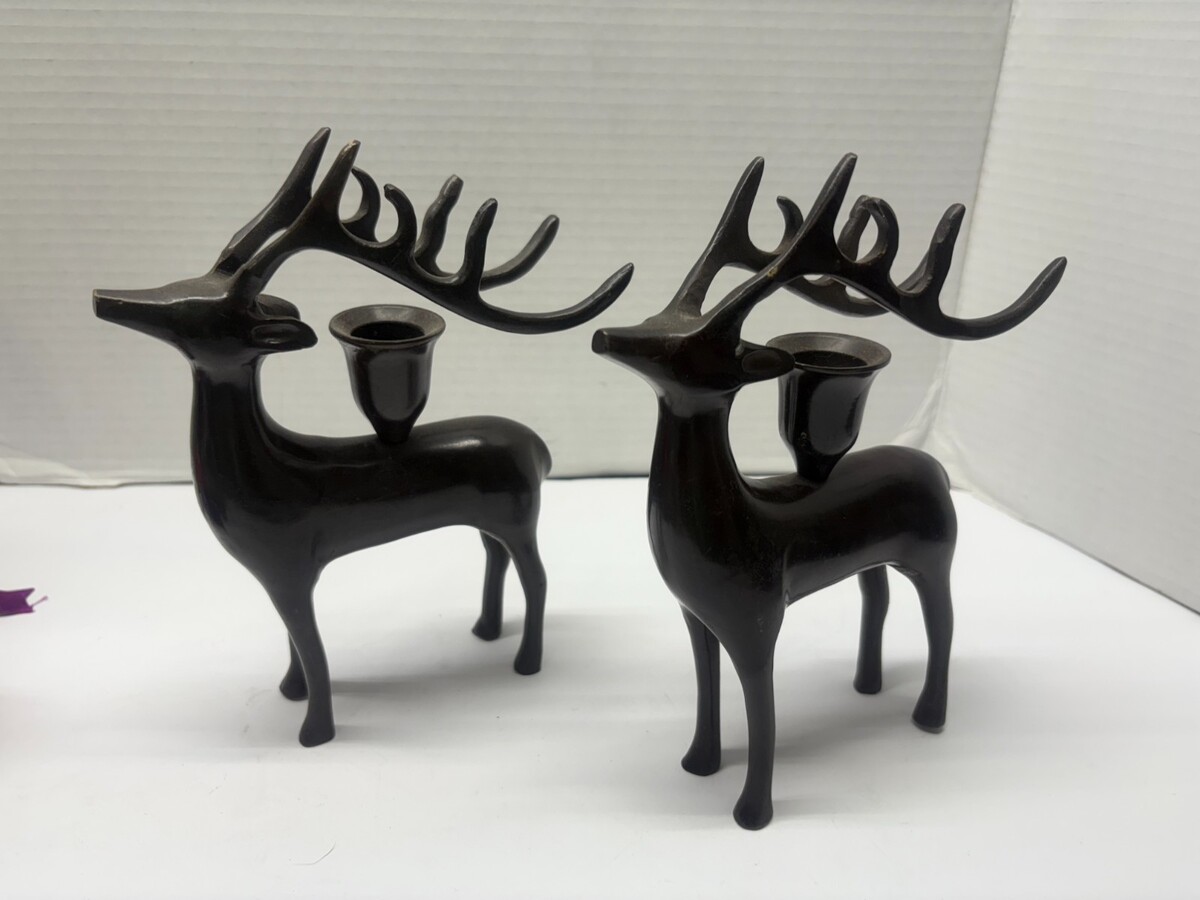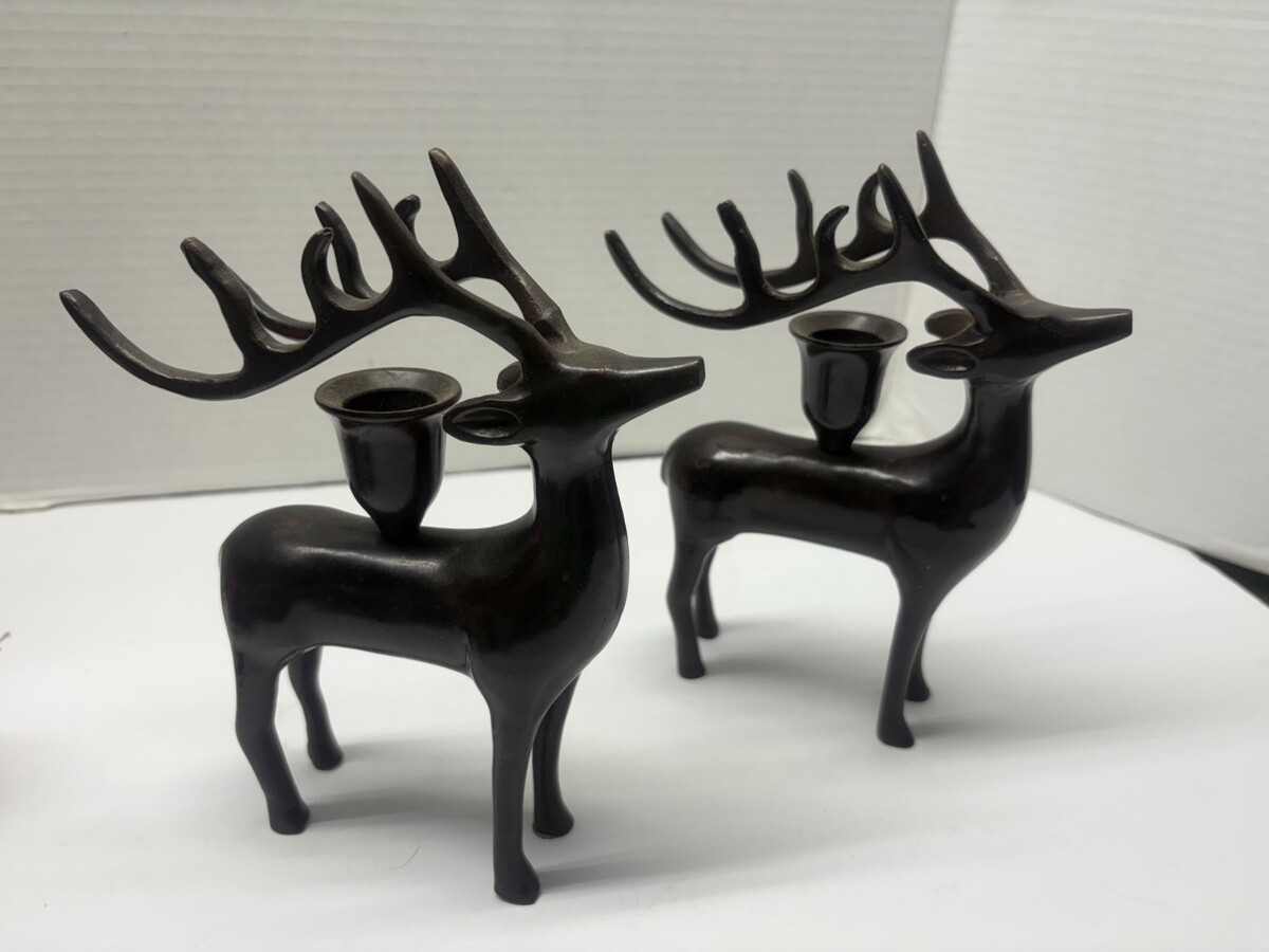Christmas Reindeer Taper Bronze Enamelled Set of 2 Candle Holders