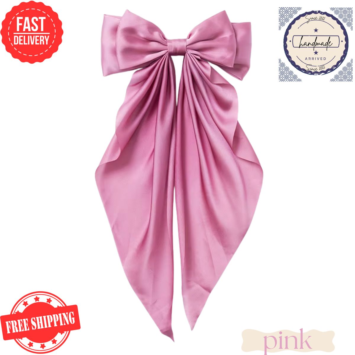 Christmas Sale Long Satin Hair Bow for Stylish Hairstyles and Everyday Use PINK