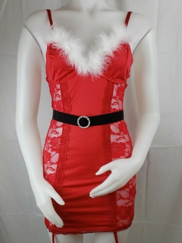 Very Sexy Lingerie, Red Lace Teddy Chemise, Christmas Lingerie and Seducing Santa Sleepwear