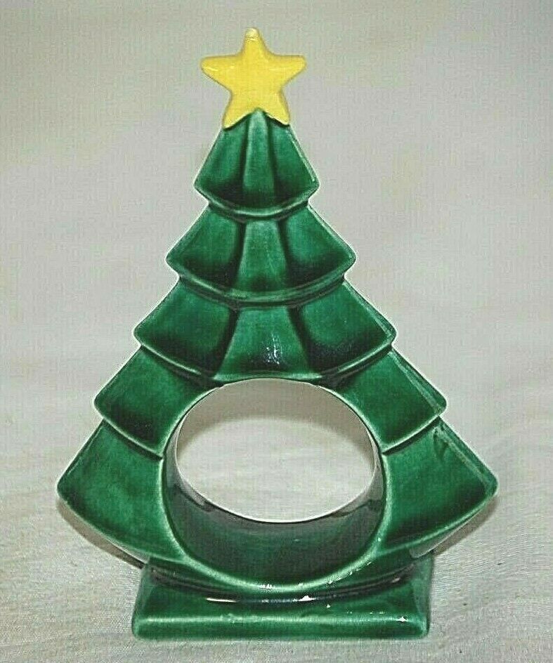 Christmas Tree Napkin Ring Holder Green Xmas Tree Yellow Star Table Holiday Decr