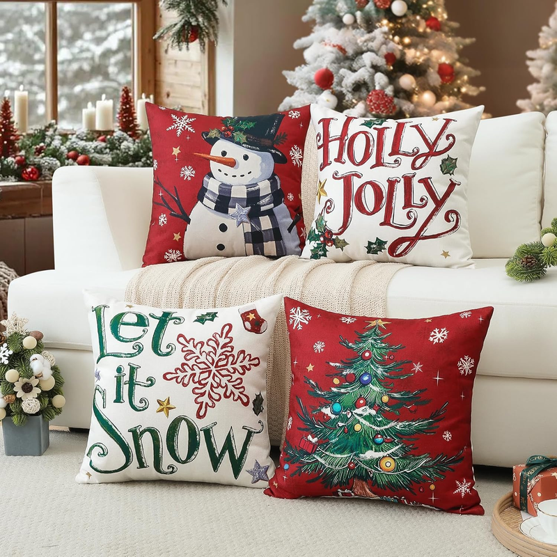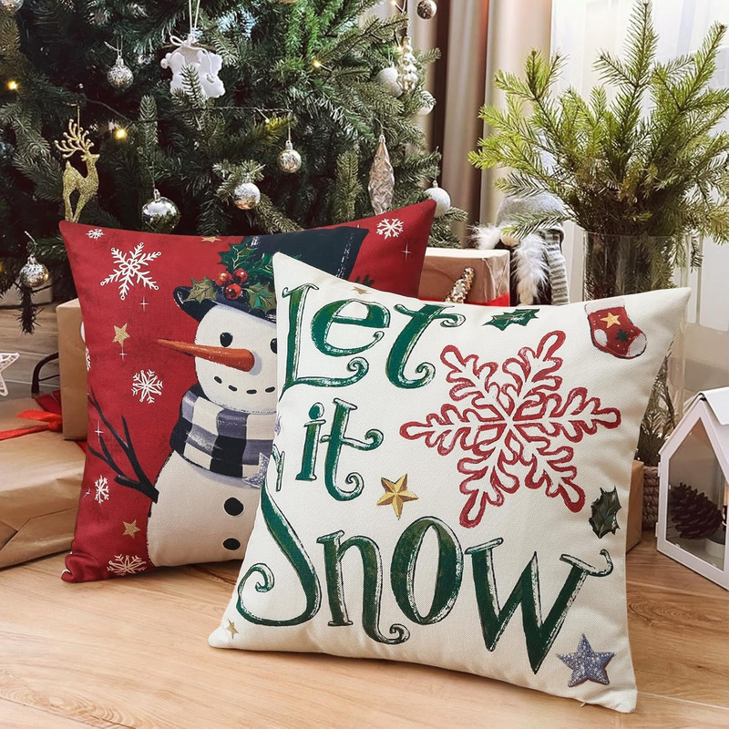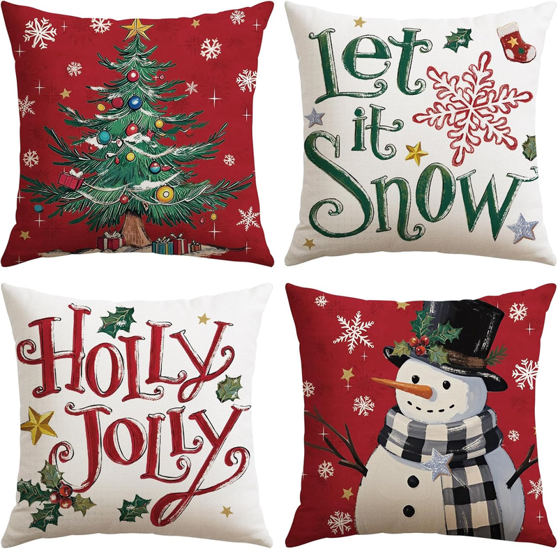 - Christmas Tree Snowman Throw Pillow Covers 18X18 Inch Set of 4, Let It Snow Holl