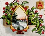 - Christmas Victorian Greeting Card Holly Church Embossed 1900s Postcard PCBG11E