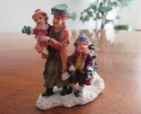 - Christmas Village Figurine Woman Mother Child Boy Son holding Baby Trees 2.5"