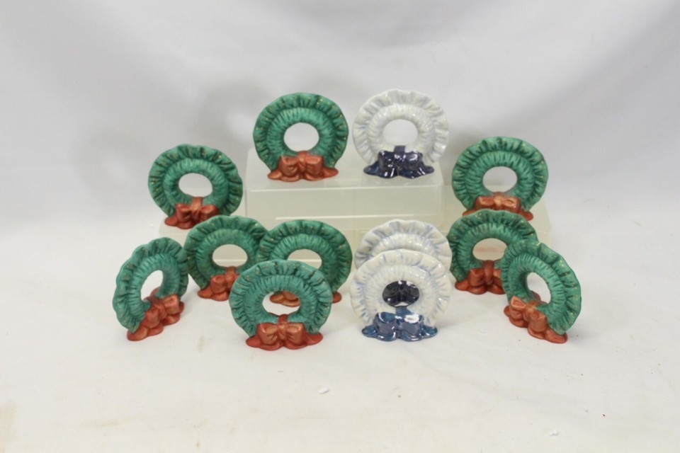- Christmas Wreath Napkin Holders Ceramic Stand Up 3-1/4" Lot of 12 Xmas
