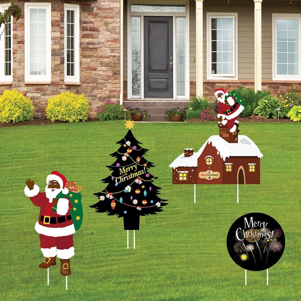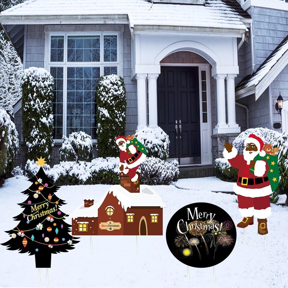 - Christmas Yard Stakes Black Christmas Tree Santa Claus Outdoor Lawn Decor