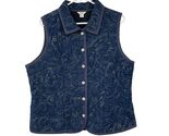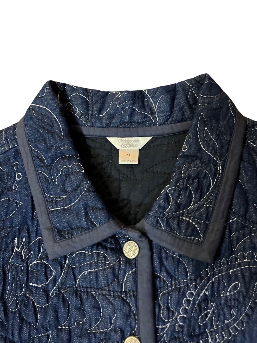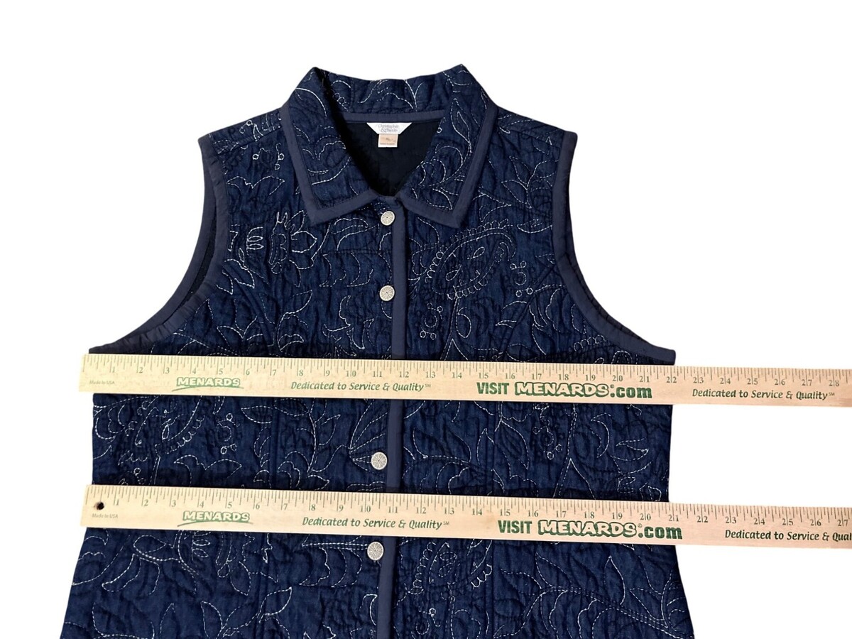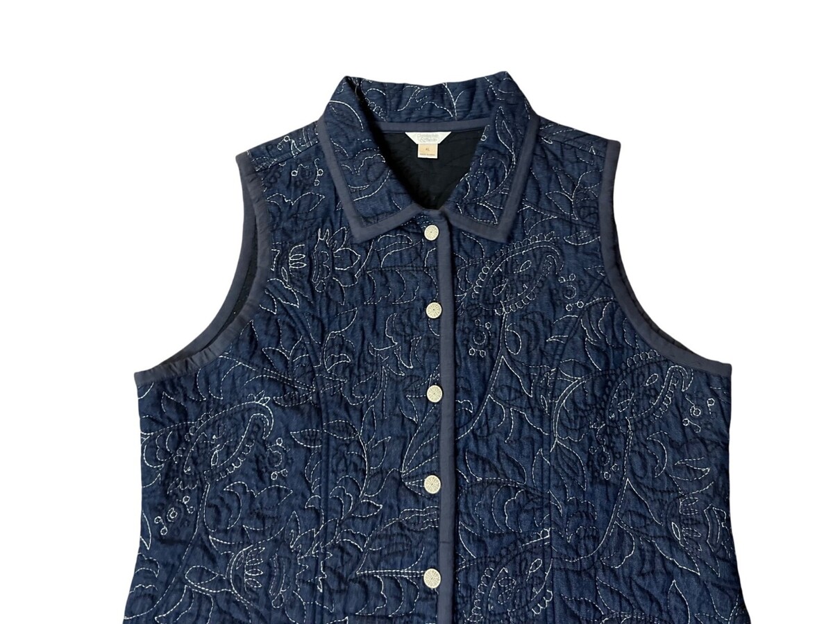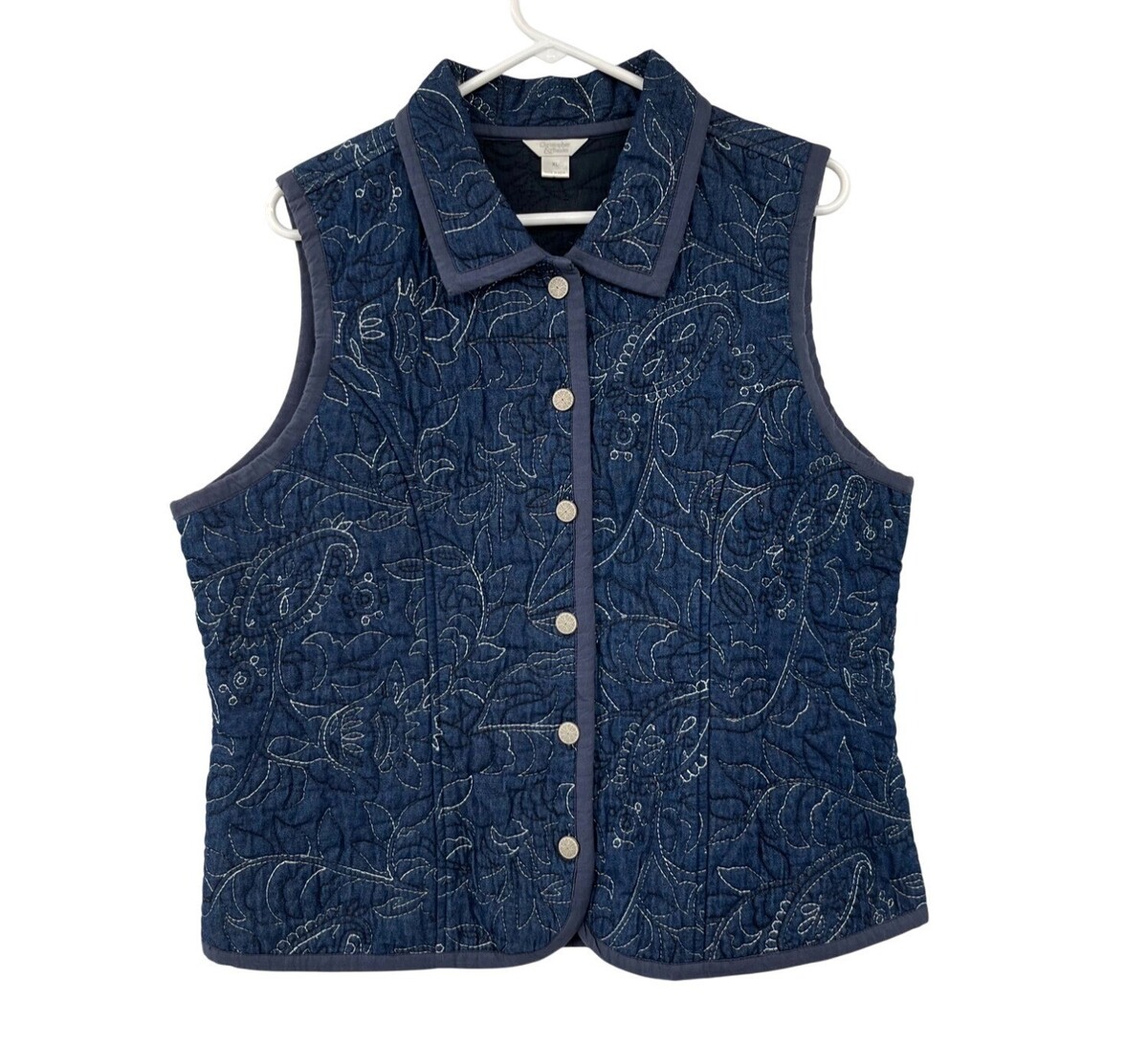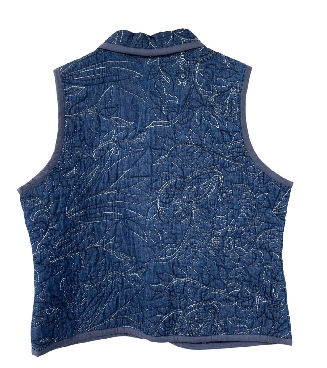 - Christopher & Banks Denim Quilted Vest Women's XL – Blue Floral Stitch Used