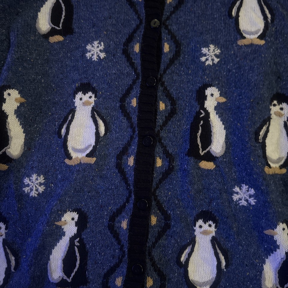 - Christopher & Banks Hand Embroidered Penguin Snowflake Sweater Women’s LG Blue